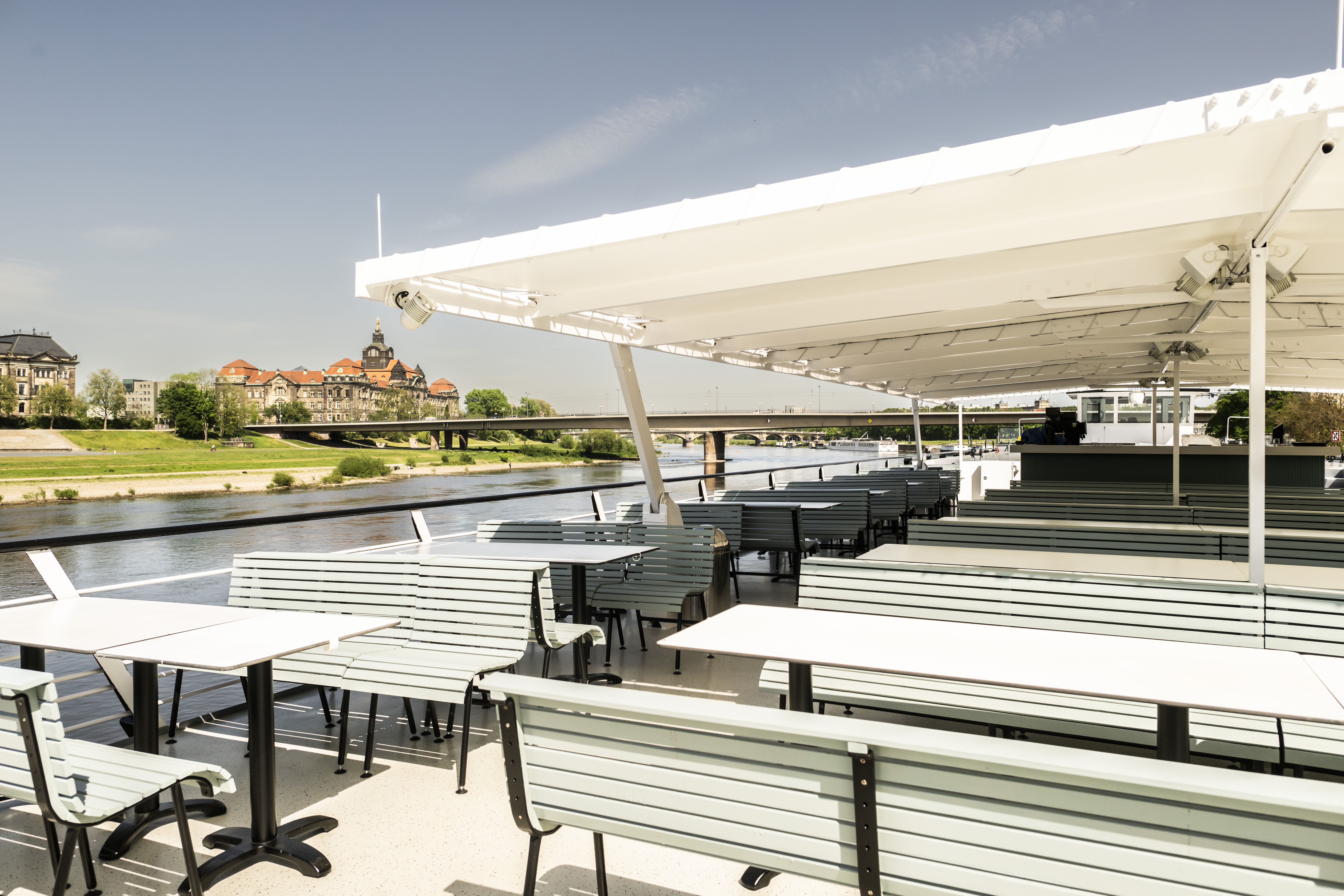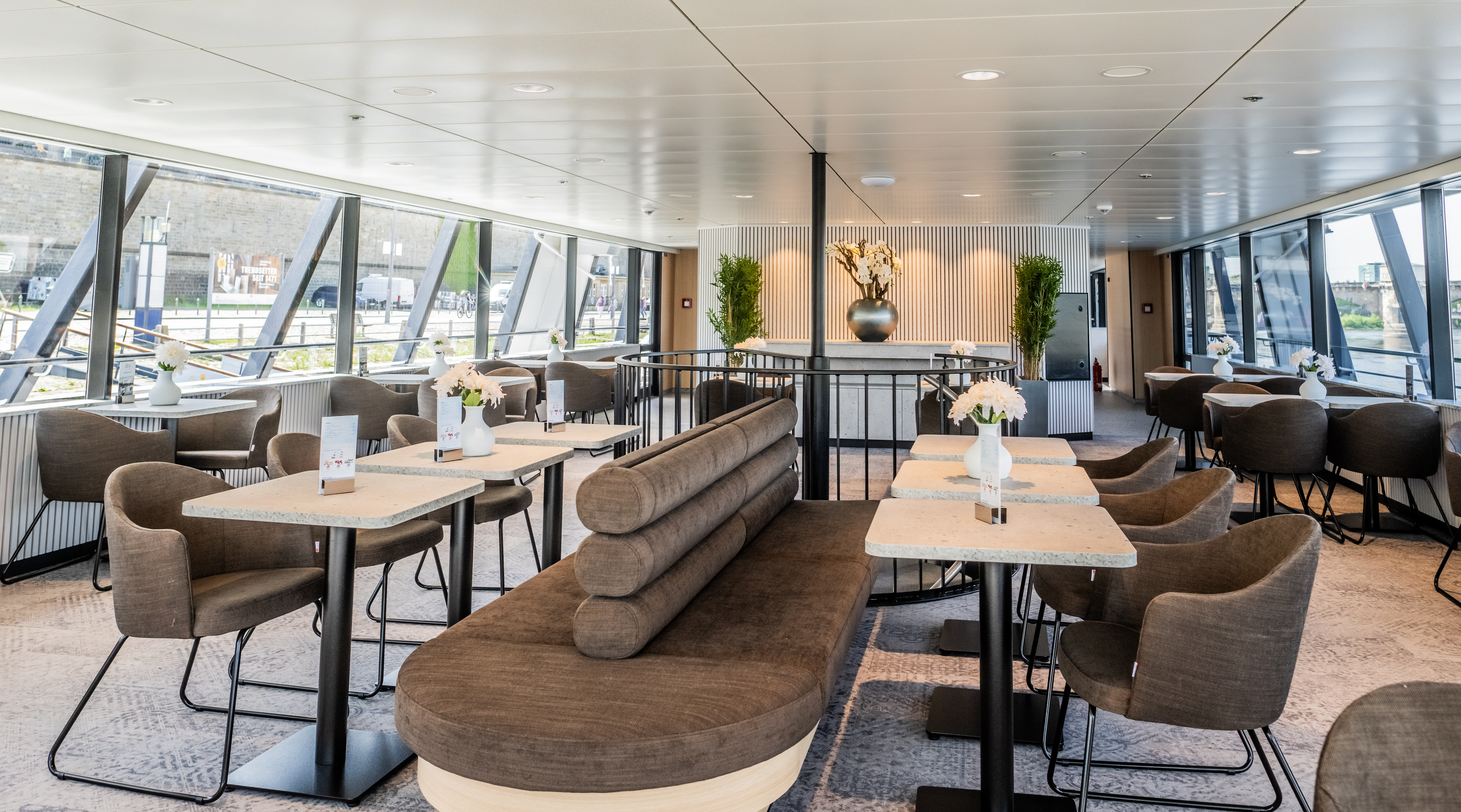 Elegante Salons mit Panoramablick und eine komfortable Ausstattung sowie das großzügige Flair an Bord lassen die Fahrt mit dem modernen Salonschiff zu einem unvergesslichen Erlebnis werden. Für Ihre Veranstaltung stehen Ihnen vier Salons zur Verfügung.